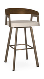Introducing the exquisite Carmela Swivel Counter Stool by Hennen's Furniture, a pinnacle of luxury and sophistication for your home. Crafted with a sturdy 300 lb weight test and fully welded construction, this bar stool seat height is 26 inches, perfect for any counter or bar setting. Embodying a transitional style with a medium finish, this stunning stool has a metal base with an ash back accent and boasts a modern design that exudes elegance. The bronze metal with the vinyl upholstery material adds a touch of opulence to any space. Custom orders are welcome.