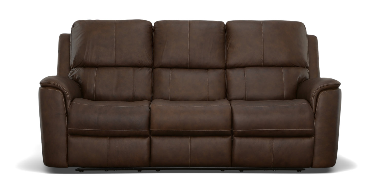 Introducing the Henry Leather Power Reclining Sofa by Hennen's Furniture, a luxurious addition to your living space that combines comfort and style seamlessly. Crafted with the finest 100% top grain leather on all front-facing surfaces, this sofa exudes elegance and sophistication. The vinyl match on the sides and back ensures durability and longevity. Experience ultimate relaxation with power headrests and lumbar support, as well as a zero gravity feature for optimal comfort. The convenient zero-draw USB-A port allows you to stay connected while you unwind. The removable back and generous seat depth of 22" offer customizable comfort for your lounging needs.